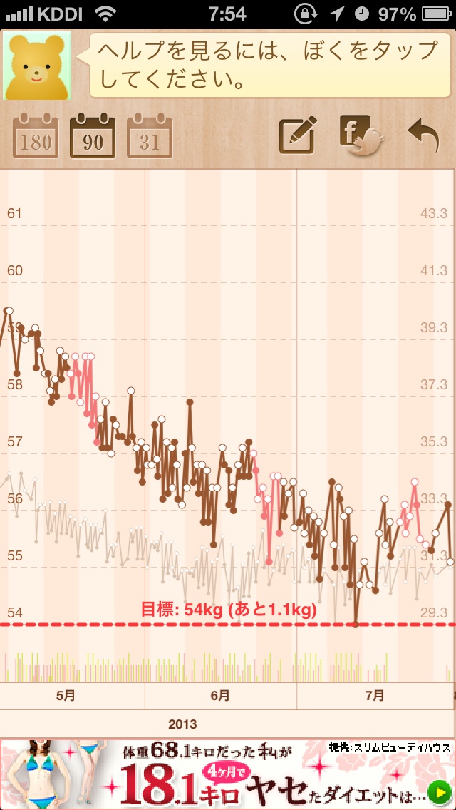 2013年7月 55kg 体脂肪率30% BMI22